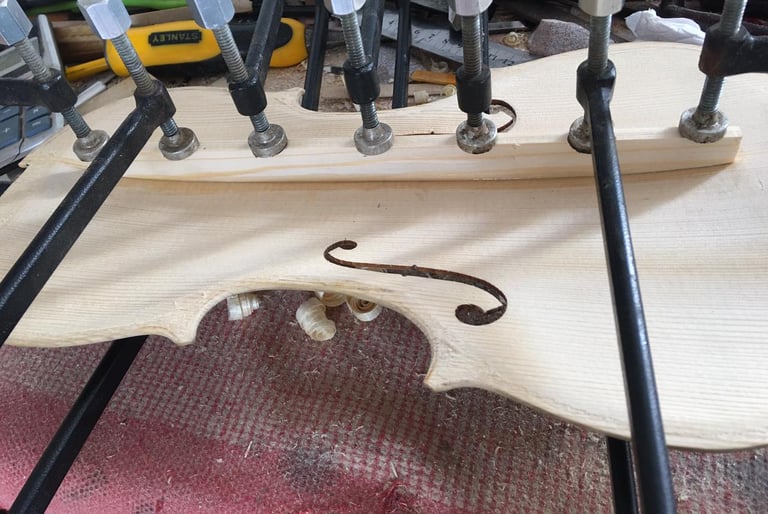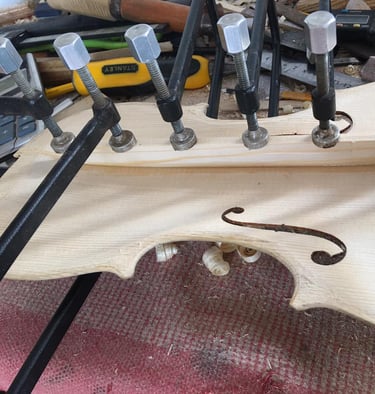 Cada violino nasce do silêncio e da escuta atenta da madeira, esculpido à mão.